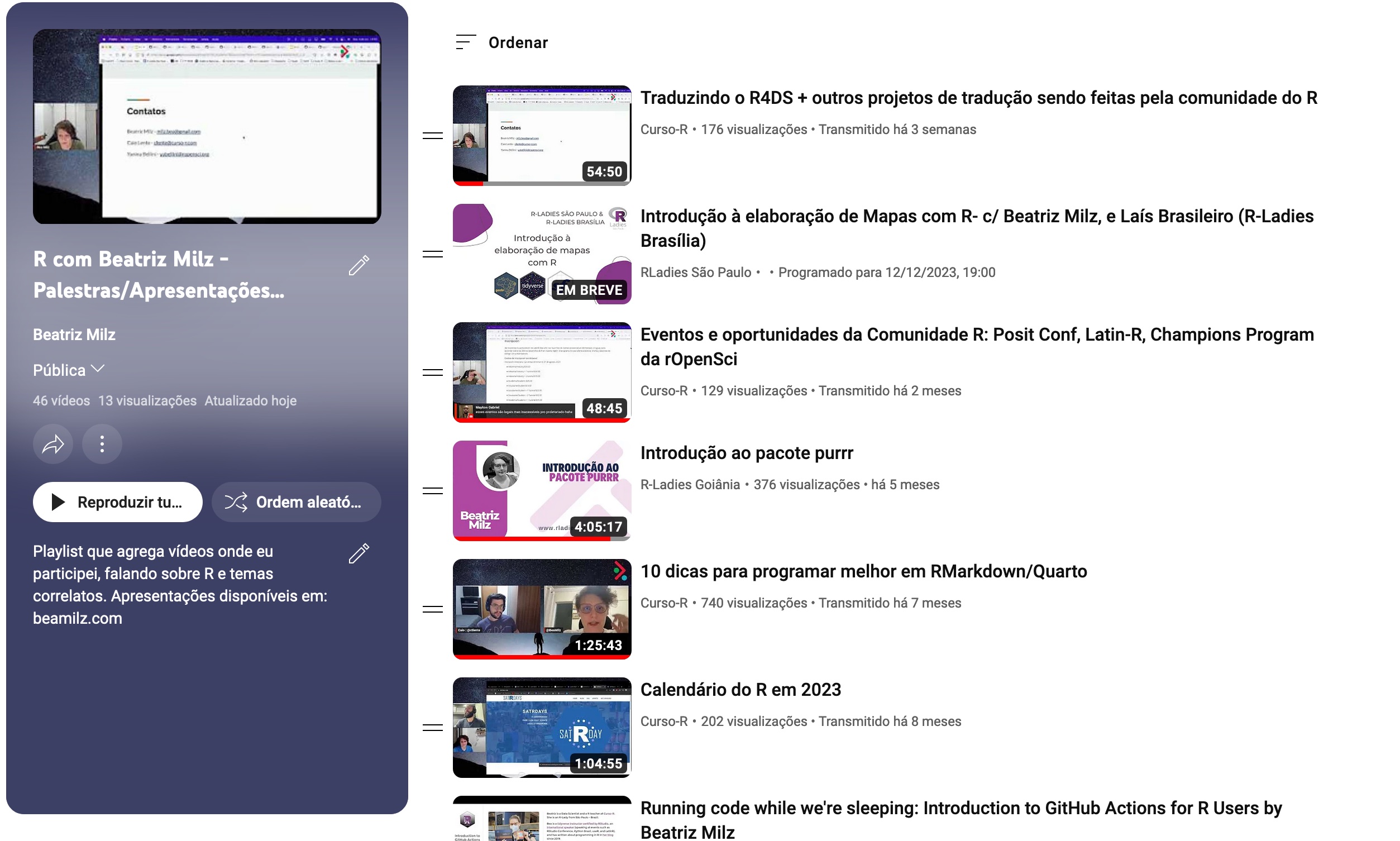 Organização, junto com a Luana Antunes, do clube do livro “R for Data Science”, pela R-Ladies São Paulo. Mais informações.