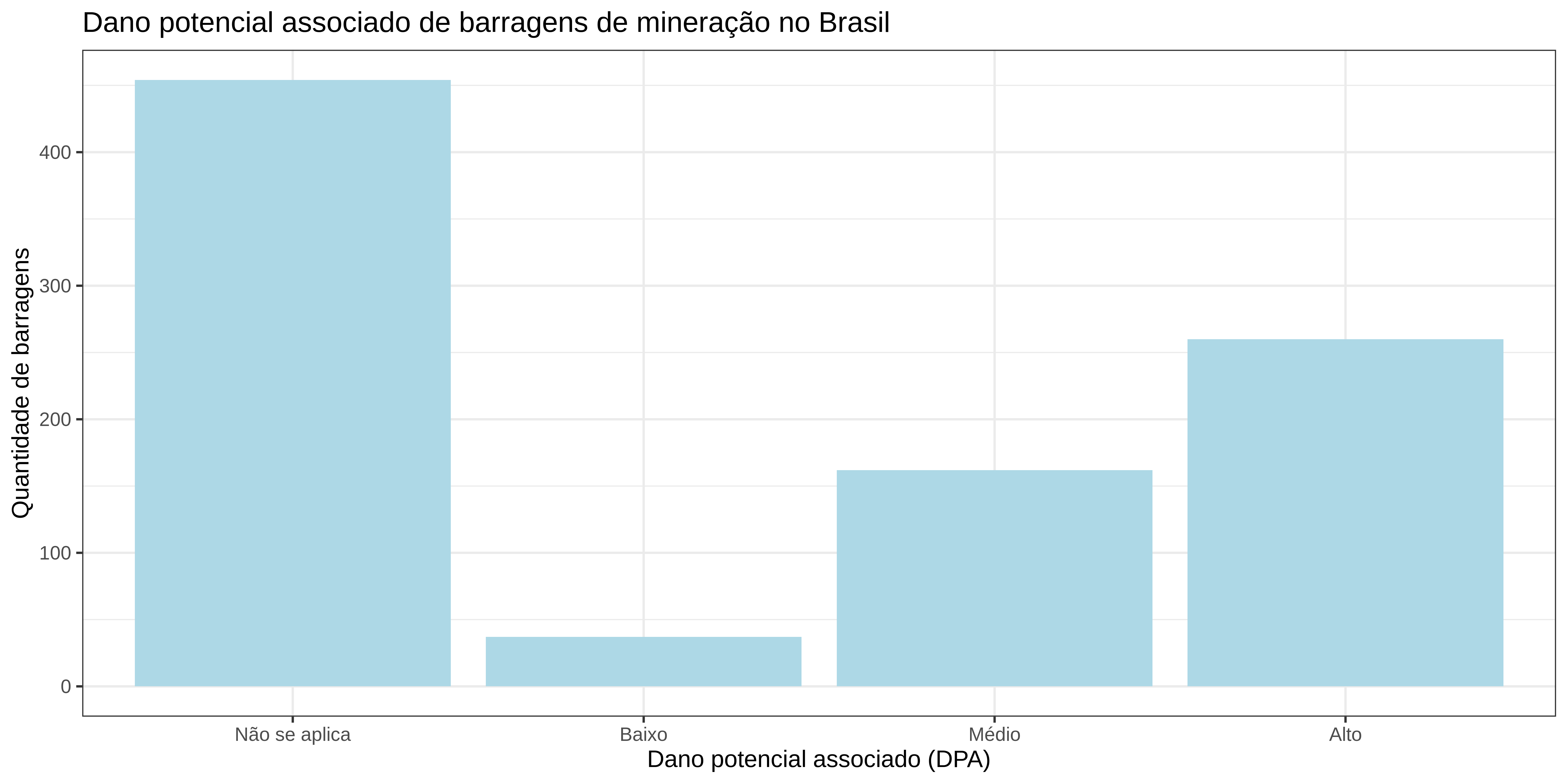 labs(x = "Dano potencial associado (DPA)", y = "Quantidade de barragens",
